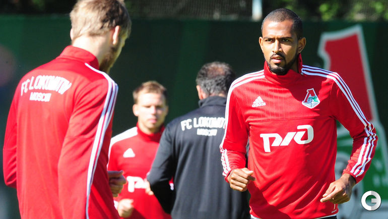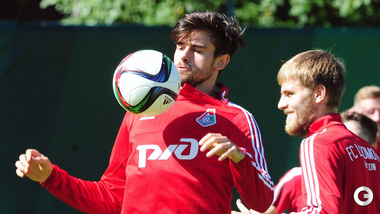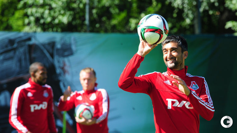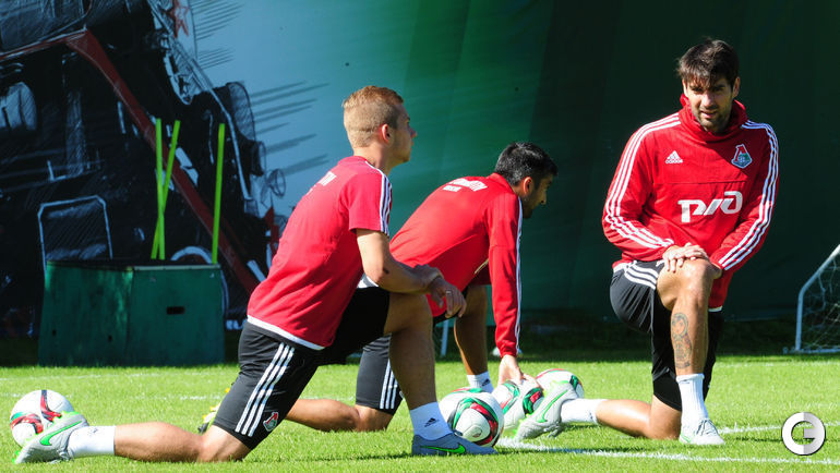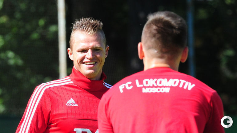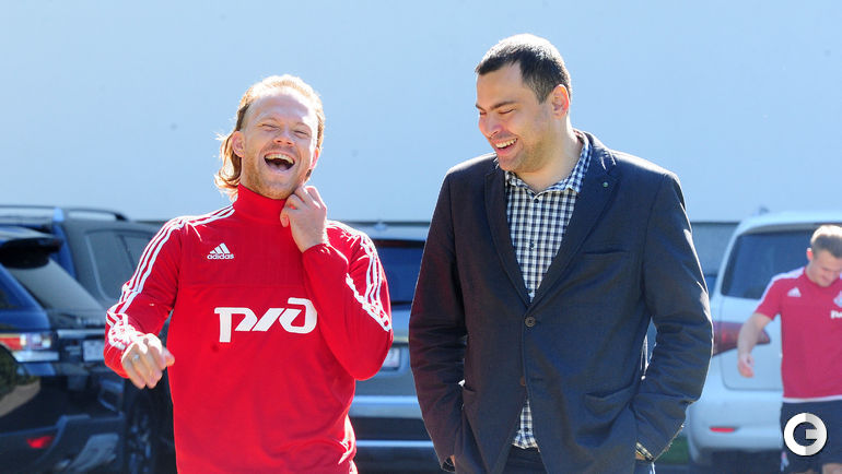 Футболисты "Локомотива" и президент клуба Ольга Смородская поздравили главного тренера Игоря Черевченко с днем рождения на своей базе в Баковке. Фото Никита УСПЕНСКИЙ, "СЭ"