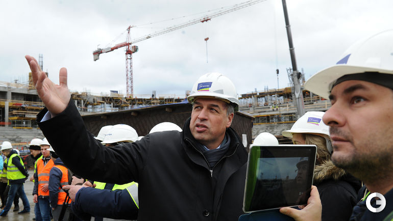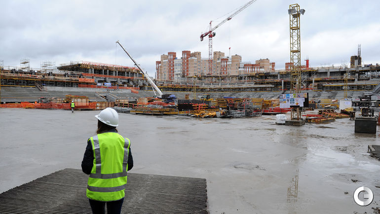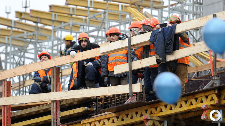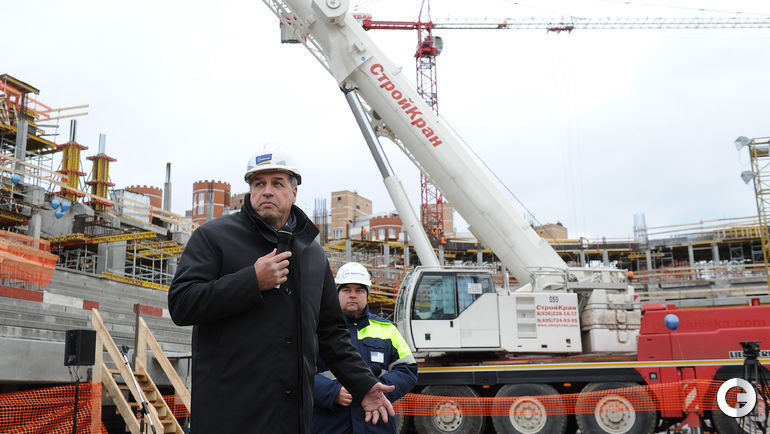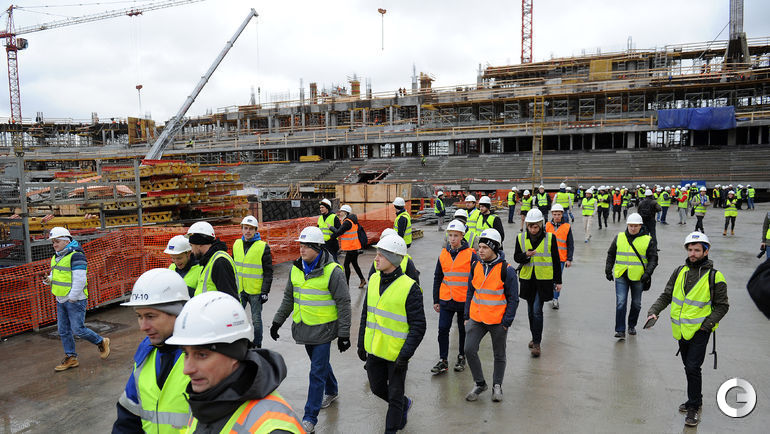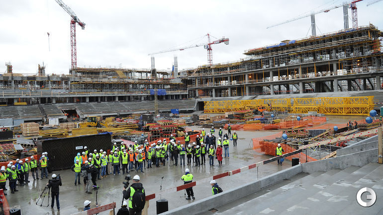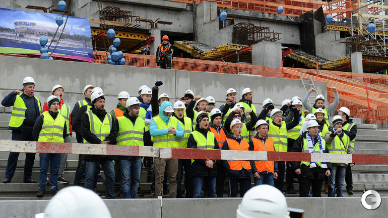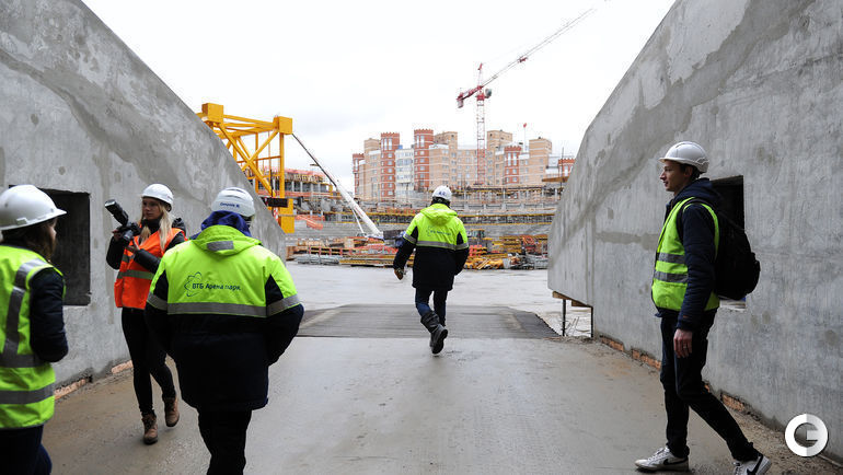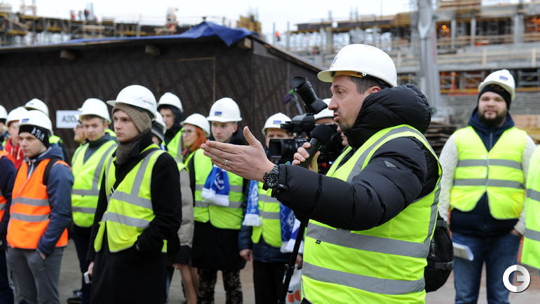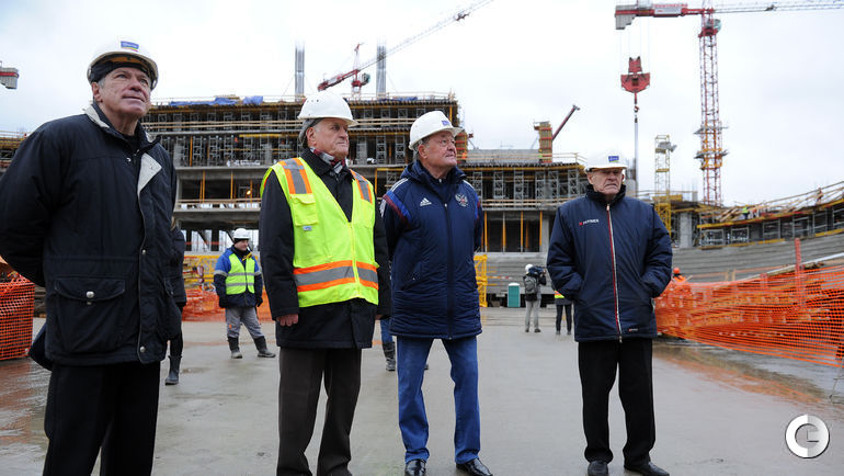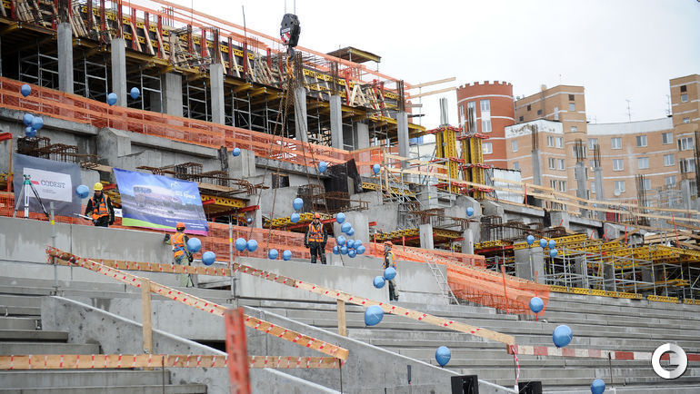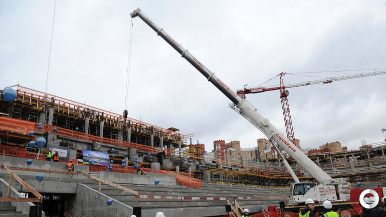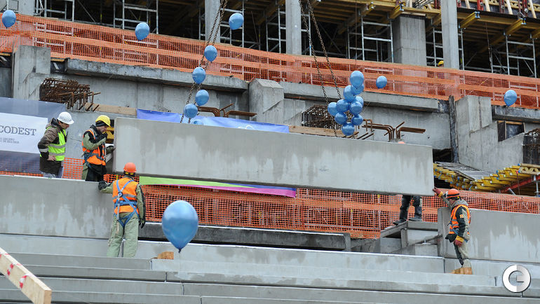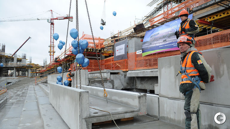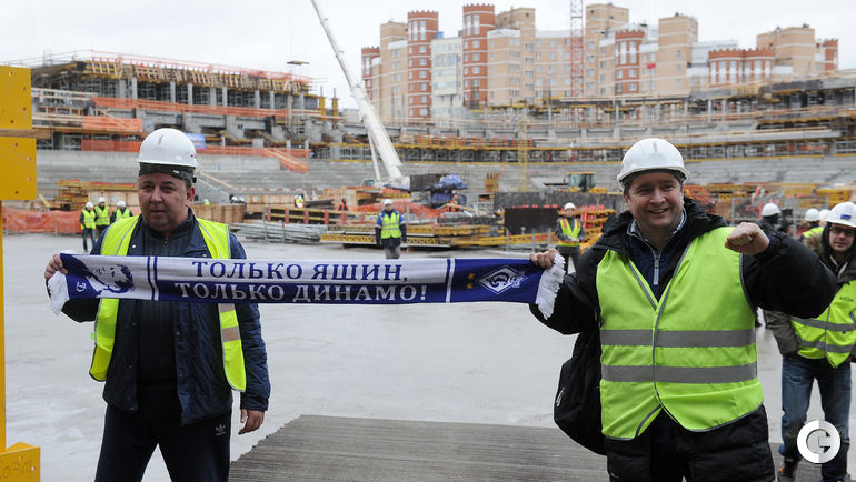 Сегодня строители стадиона "Динамо" имени Льва Яшина произвели замыкание первого яруса трибун. На торжественное мероприятие были приглашены болельщики бело-голубых а также ветераны клуба. Открытие арены запланировано на 22 октября 2017 года, в день рождения Яшина. Планируется, что первой игрой на новой арене станет встреча "Динамо" и ЦСКА. Фото - Алексей ИВАНОВ "СЭ".