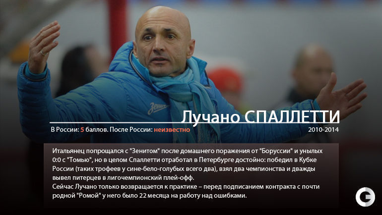 Экс-главный тренер "Зенита" Лучано Спаллетти в этот уик-энд проведет первый матч во главе "Ромы" после возвращения в Вечный город. "СЭ" рассказывает, как развивалась карьера зарубежных специалистов после практики в РФПЛ. Вашему вниманию - первая часть подборки, которую подготовил корреспондент "СЭ" Павел ГОРОДНИЦКИЙ.