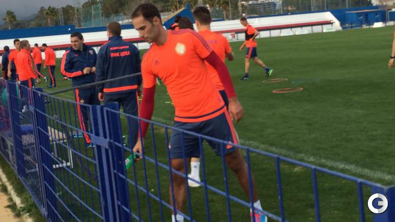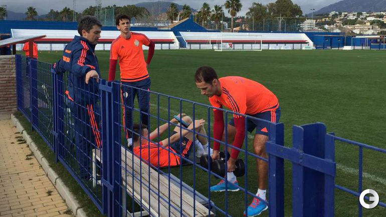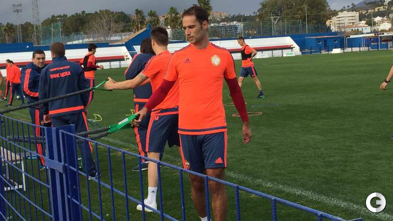 Новички ЦСКА Роман Широков и Аарон Оланаре тренируются в составе армейского клуба на сборе в испанской Марбелье в общей группе. При этом главный тренер красно-синих Леонид Слуцкий пропускает вечернее занятие ради "Спартака" - вместе со своим помощником Виктором Гончаренко наставник сборной России уехал на товарищеский матч красно-белых против болгарского "Литекса" на другой стадион того же города Сан-Педро-Алькантара.