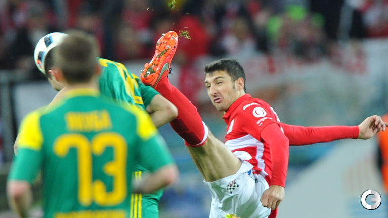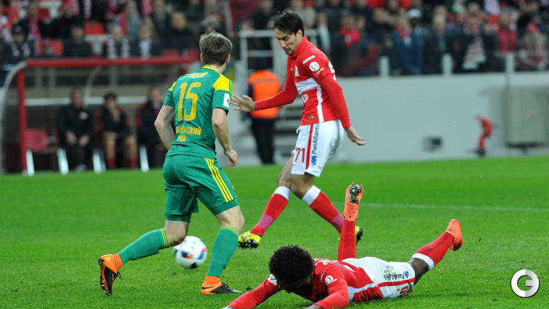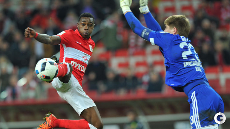 "Спартак" и "Кубань" сыграли вничью в матче 23-го тура премьер-лиги. На 6-й минуте счет открыл экс-игрок краснодарцев Ивелин Попов, который не стал праздновать гол в ворота своей бывшей команды. На 36-й минуте великолепный дальний удар удался защитнику гостей Аподи. Перед самым перерывом после ошибки вратаря красно-белых Артема Реброва свой первый гол в чемпионате России забил 20-летний нападающий "Кубани" Максим Майрович. Во втором тайме Квинси Промес сравнял счет, забив со штрафного свой 13-й гол в премьер-лиге.