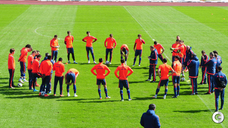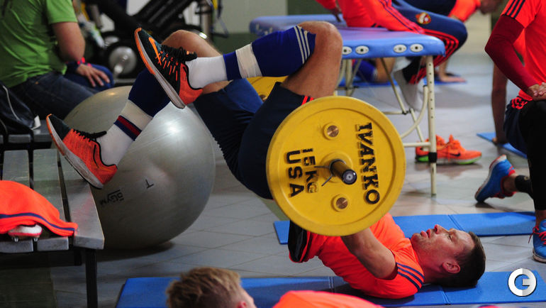 ЦСКА провел открытую тренировку на стадионе "Октябрь". Полузащитник Александр Цауня занимался на тренажерах и даже не вышел на поле для пробежки. У него ушиб голеностопа. Александр Головин, который тренировался по индивидуальной программе вчера, вернулся в общую группу.