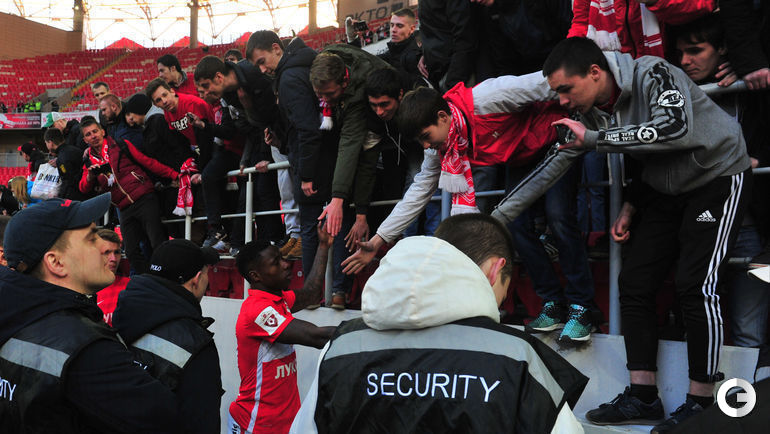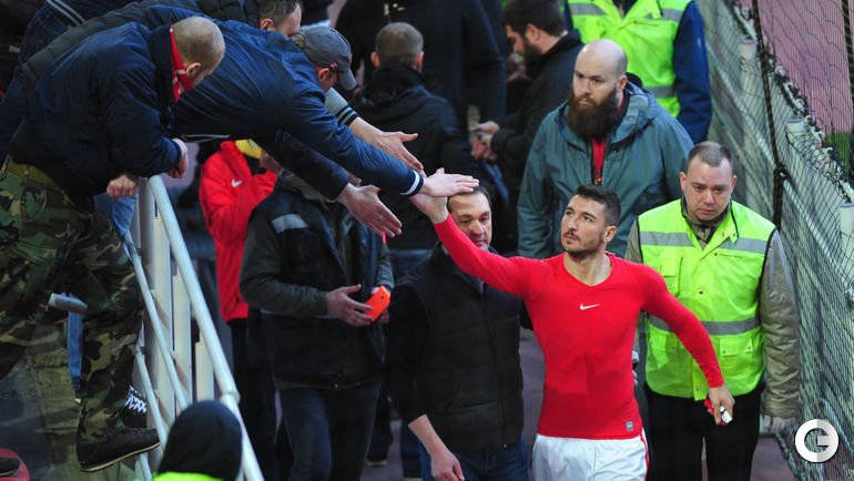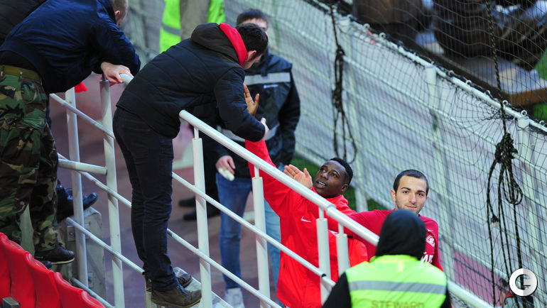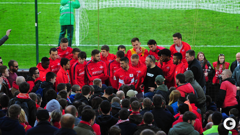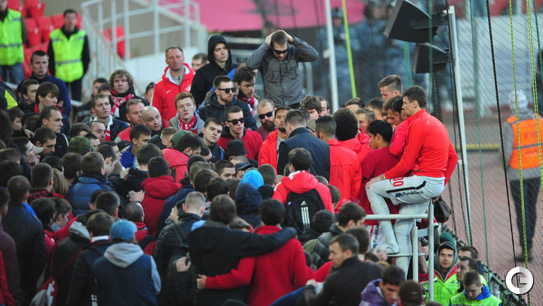 После домашнего матча 25-го тура премьер-лиги против "Мордовии" (2:2) игроки "Спартака" поднялись на фанатскую трибуну красно-белых и пообщались с болельщиками.