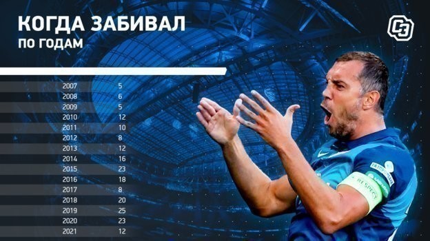 Среди членов символического «Клуба 100» лидер «Зенита» занимает третье место, уступая только Александру Кержакову и Олегу Веретенникову. Легенду «Ротора» 32-летний форвард может обойти уже летом, а погоне за Кержаковым наверняка будет посвящен весь будущий сезон. Сейчас зенитовских бомбардиров разных лет разделяет 30 мячей.