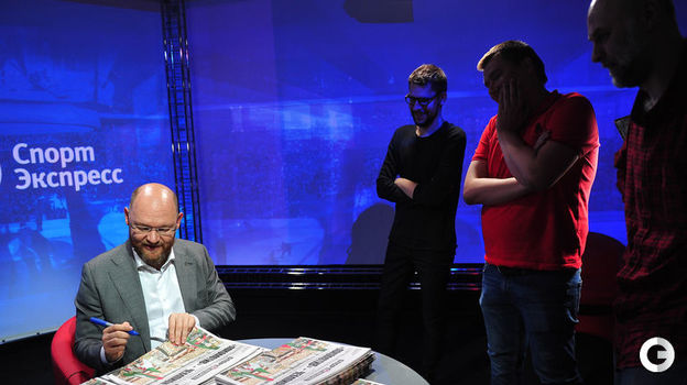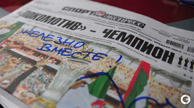Президент "Локомотива" Илья Геркус после победы своего клуба в чемпионате России побывал в редакции "Спорт-Экспресс", более часа отвечал на вопросы журналистов и оставил свой автограф на чемпионской газете.