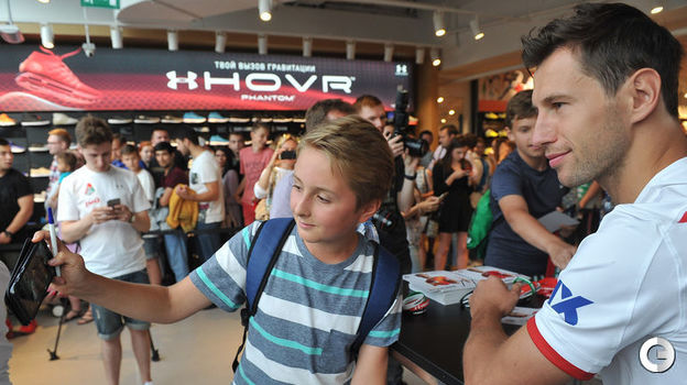 "Локомотив" после победы в Самаре - первой в новом сезоне - провел автограф-сессию со своими новичками хавбеком Гжегожем Крыховяком, защитником Бенедиктом Хеведесом и нападающим Федором Смоловым. Повезло болельщицам, которые пришли на мероприятие заранее. Им удалось сделать фото в обнимку с футболистами. Особенной популярностью у девушек пользовался форвард сборной России. Однако желающих в очереди было так много, что "обнимашки" пришлось сократить.