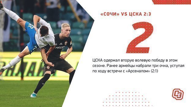 Интересные цифры волевой победы ЦСКА над «Сочи» (3:2).