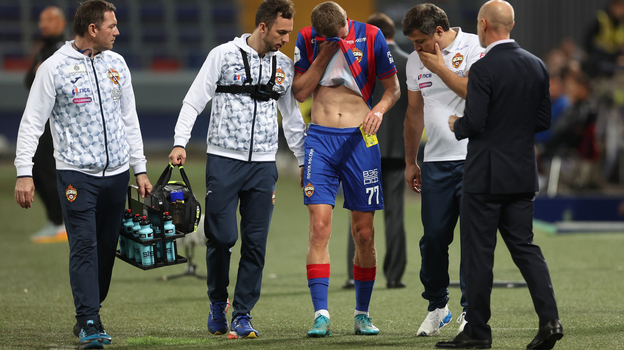 Защитник ЦСКА Илья Агапов был вынужден покинуть поле из-за травмы на 12-й минуте матча.