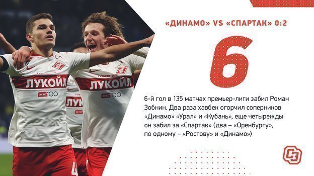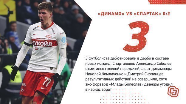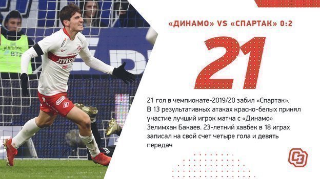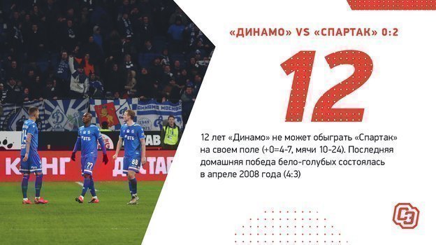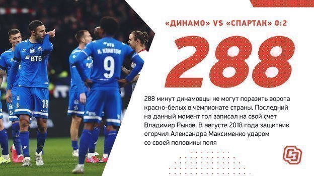 Главные цифры дерби «Динамо» — «Спартак» (0:2).