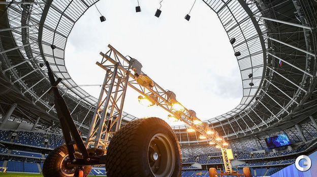На стадионе "ВТБ Арена-Центральный стадион "Динамо" имени Льва Яшина" идёт подготовка к Суперкубку России, в котором в субботу встретятся "Зенит" и "Локомотив".