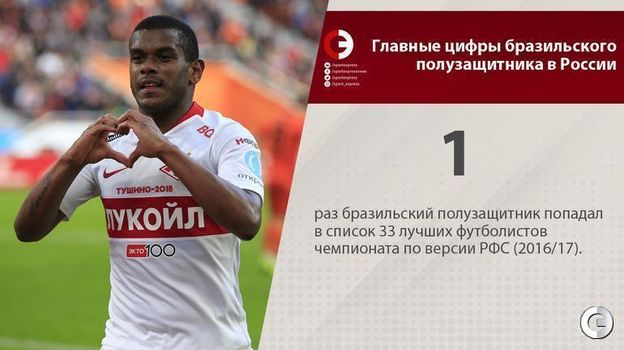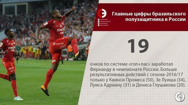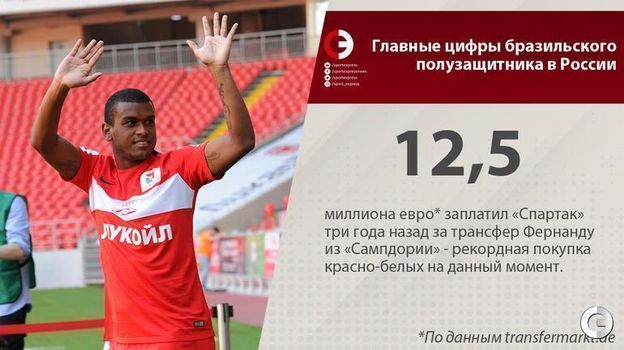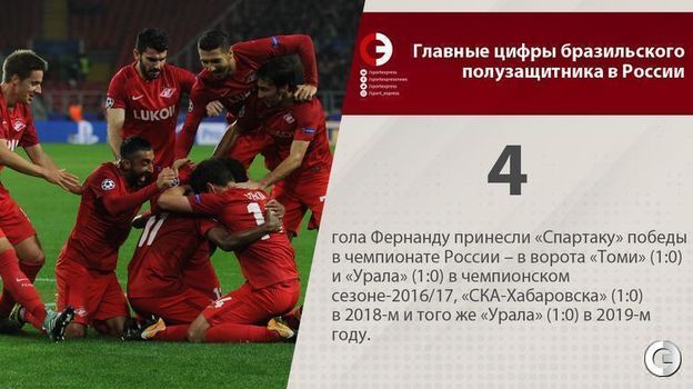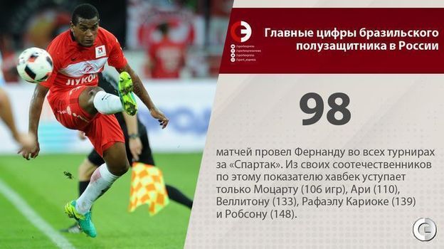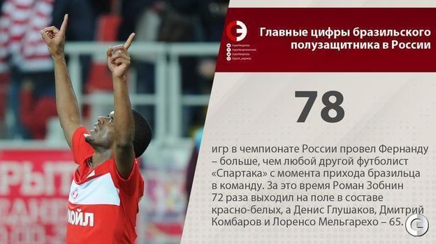 Сегодня "Спартак" объявил о переходе Фернанду в китайский "Бэйцзин Гоань". Вспоминаем главные цифры бразильского полузащитника в России.