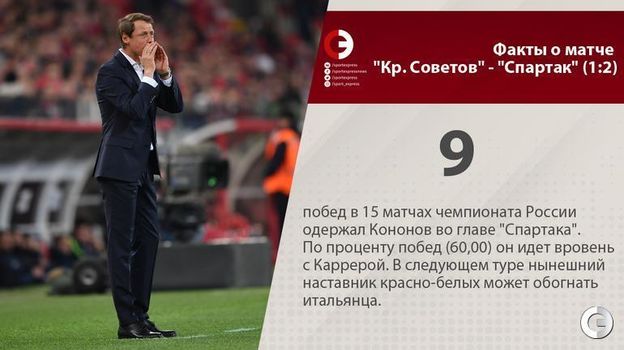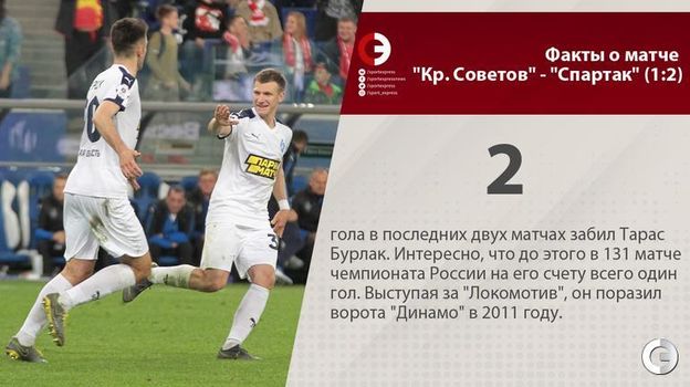 Бомбардирские подвиги Бурлака и Зе Луиша, победная серия "Спартака" Кононова – эти и другие интересные факты о матче "Крылья Советов" – "Спартак" (1:2).
