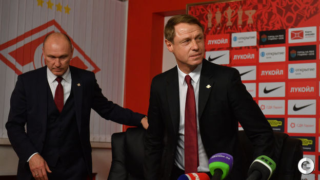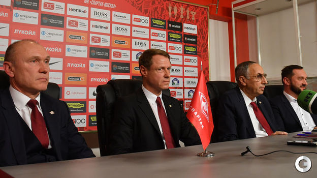 На базе "Спартака" состоялось представление нового главного тренера красно-белых Олега Кононова. 52-летний специалист отвечал на вопросы журналистов вместе с вице-президентом клуба Наилем Измайловым и генеральным директором Сергеем Родионовым