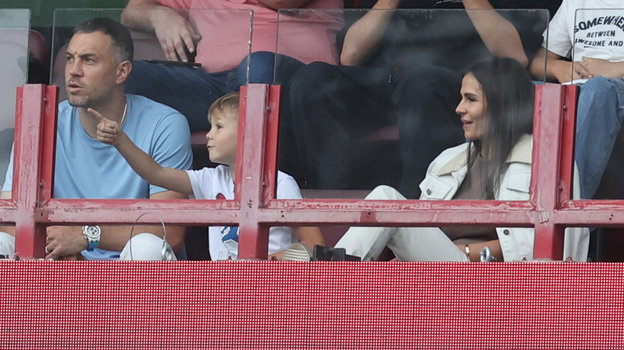Форвард столичного клуба Артем Дзюба не попал в заявку и пропустил второй матч на этой неделе. За своими партнерами Дзюба наблюдал с трибуны стадиона и комментировал игру «Локо» для сына и супруги.