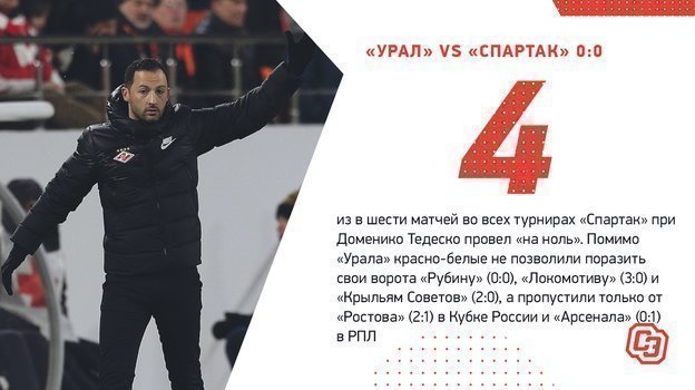 Самые интересные цифры матча «Урал» — «Спартак» (0:0) в рамках чемпионата России.