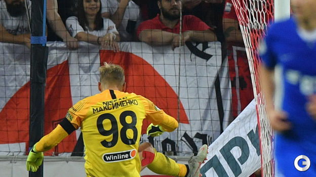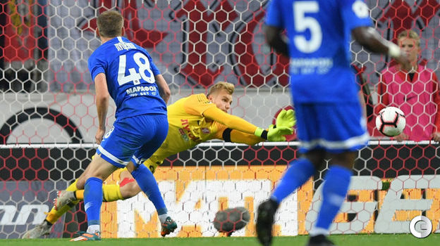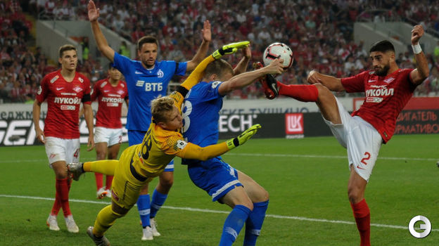 "Спартак" победил "Динамо" со счетом 2:1 в домашнем матче 5-го тура российской премьер-лиги. Защитник гостей Владимир Рыков. Он поразил ворота Александра Максименко, забив со своей половины поля. 20-летний вратарь красно-белых прервал четырехматчевую серию без пропущенных мячей в РПЛ.