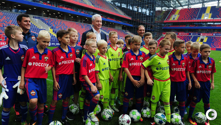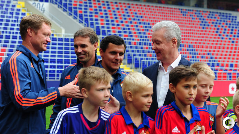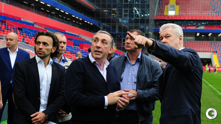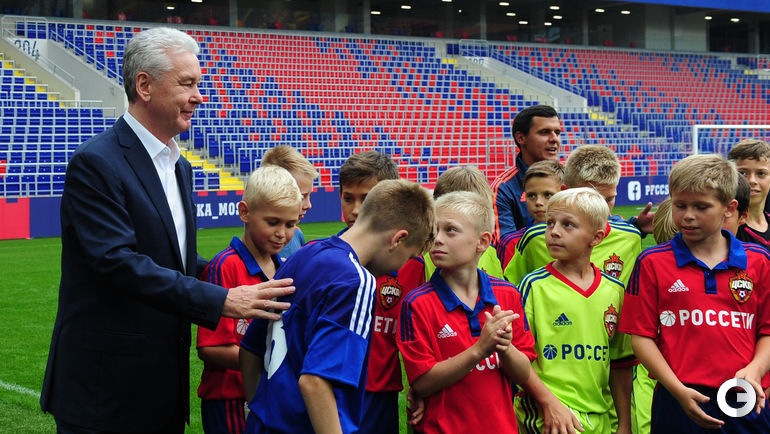 Президент ЦСКА Евгений Гинер принял мэра Москвы Сергея Собянина на введенном в строй стадионе клуба. На арене гостей ждали ветераны и юные воспитанники армейцев.