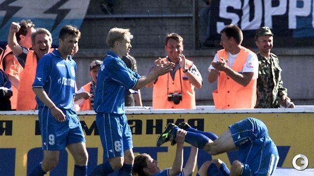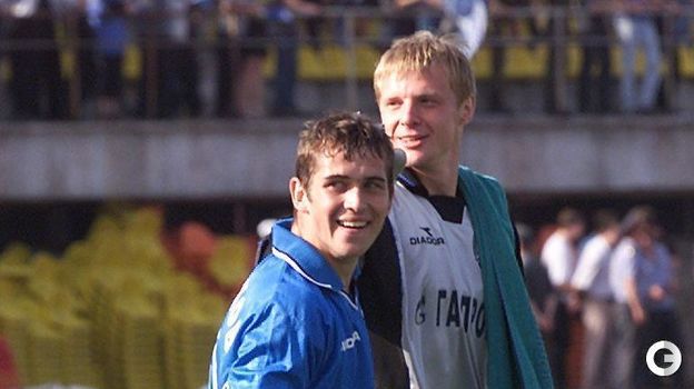18 лет назад Александр Кержаков забил свой первый гол в карьере в матче против "Спартака". Форвард "Зенита" необычно отпраздновал взятие ворот вместе с Андреем Аршавиным.