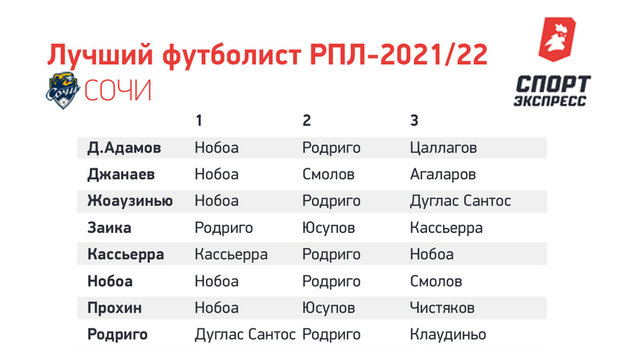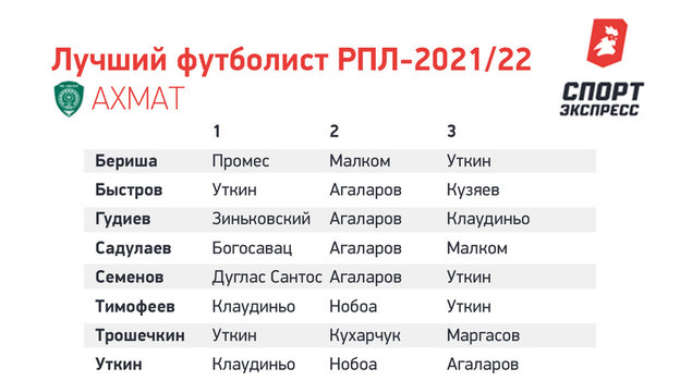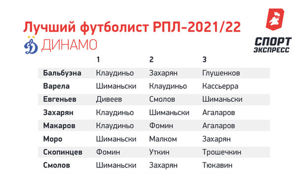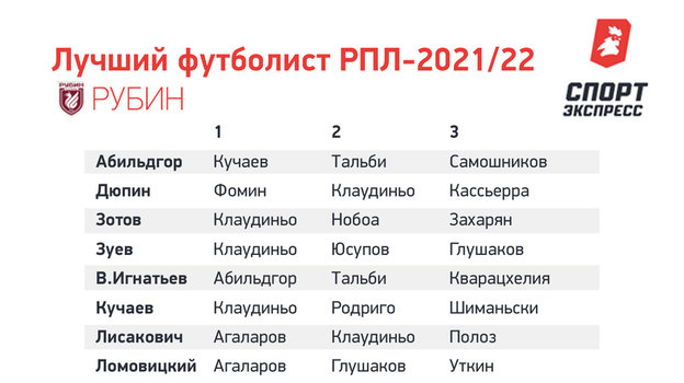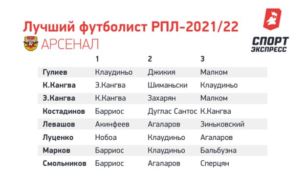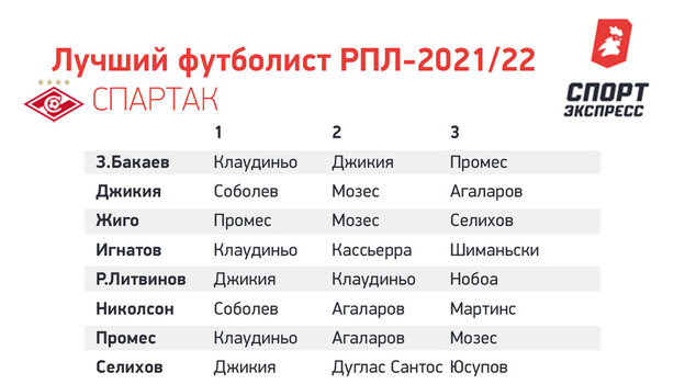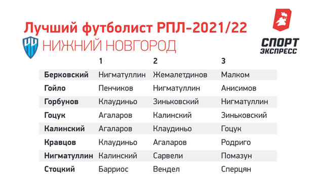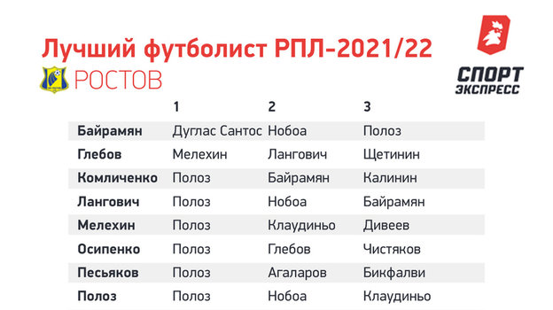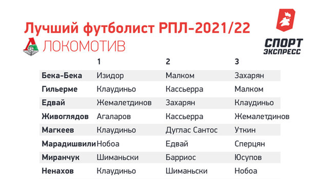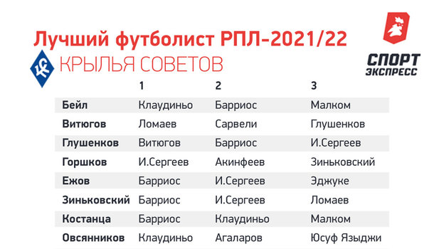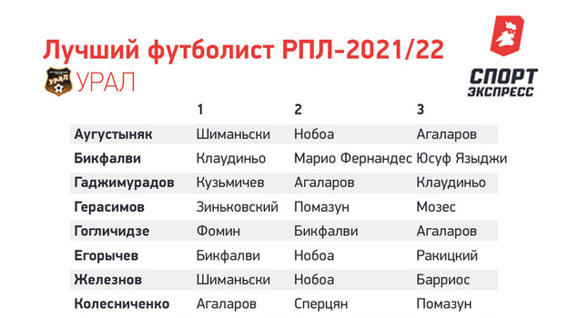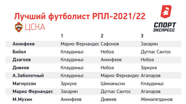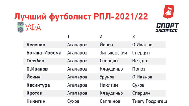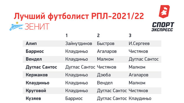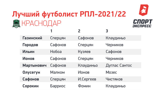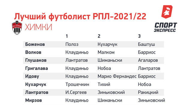 В голосовании приняли участие по 11 игроков каждой из 16 команд РПЛ в сезоне-2021/22. Футболисты называли тройки лучших.