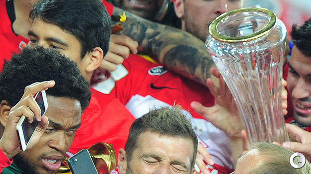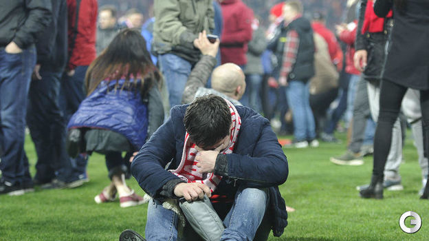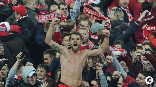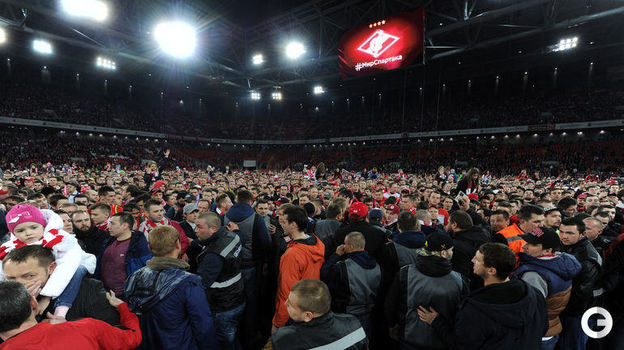 Два года назад после победы в домашнем матче над "Тереком" (3:0) "Спартаку" был вручен чемпионский кубок, которого команда ждала 16 лет. После финального свистка зрители выбежали на поле и разделили радость вместе с игроками.