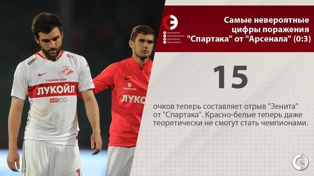 Самые невероятные цифры поражения "Спартака" от "Арсенала" (0:3)