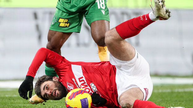 Ключевой момент первой половины произошел на 33-й минуте: нападающий красно-белых Александр Соболев ненамеренно жестко сыграл против Игоря Коновалова. Главный арбитр встречи Виталий Мешков вынес свое решение после просмотра видеоповтора.