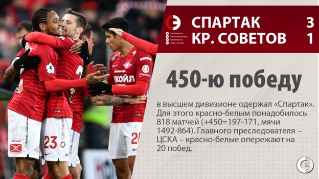 Главные факты о матче 15-го тура "Спартак" – "Крылья Советов" (3:1).
