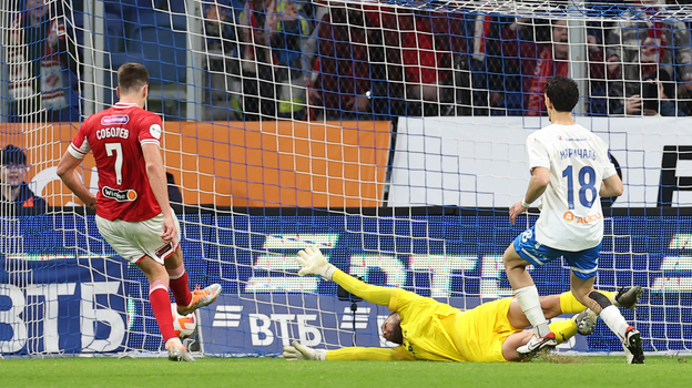 На точный удар мексиканца Луиса Чавеса с 11-метровой отметки в начале игры красно-белые ответили двумя голами Александра Соболева в концовке второго тайма. Форвард «Спартака» дважды успевал первым на добивание после того, как вратарь бело-голубых Игорь Лещук не фиксировал мяч в руках.