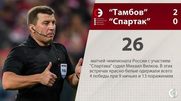 "Спартак" проиграл половину матчей при судействе Вилкова