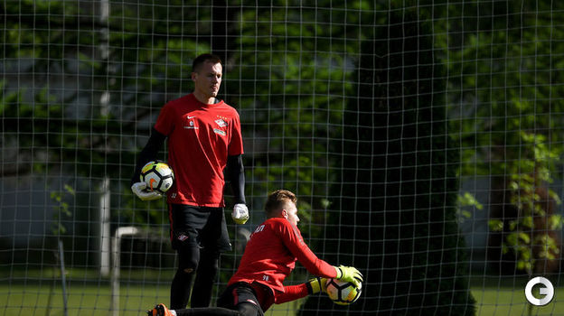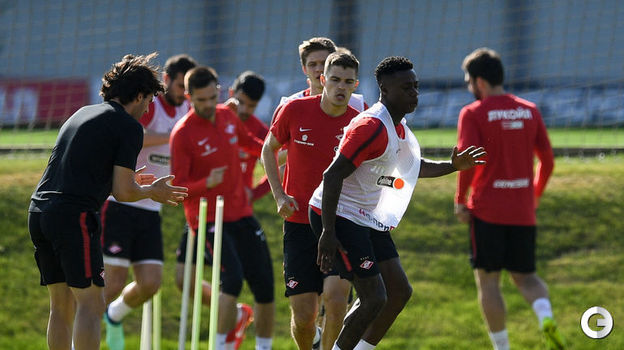 Футболисты "Спартака" провели тренировку в преддверии матча 30-го тура чемпионата России с "Динамо". С командой занимался восстанавливающийся после тяжелой травмы колена Георгий Джикия, тогда как капитан Денис Глушаков занятие пропустил.
