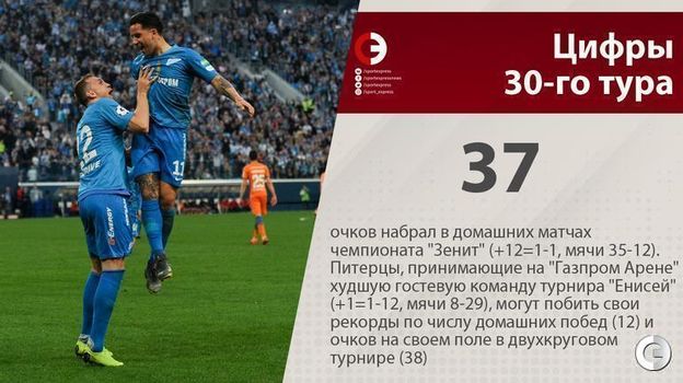 Зенит | 18 | 11 | 6 | 1 | 34-12 | 39 | |