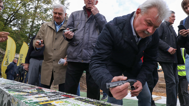 Руководители, игроки и ветераны автозаводцев, а также болельщики оставили свои пожелания на первой свае новой арены.