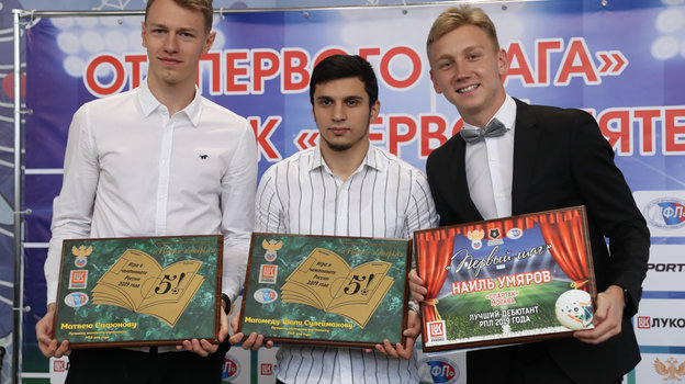 В Московском Дворце пионеров на Воробьевых горах прошла церемония вручения премии «Первая пятерка» лучшим молодым футболистам РПЛ. Награду получили игроки «Краснодара» Матвей Сафонов и Магомед-Шапи Сулейманов, а также спартаковец Наиль Умяров за лучший дебют в РПЛ.