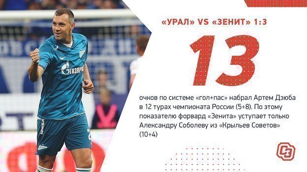 Главные цифры очередной победы «Зенита» над «Уралом» (3:1).