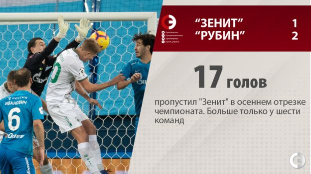 В матче 17-го тура премьер-лиги петербуржцы уступили "Рубину" (1:2), но сохранили лидерство.