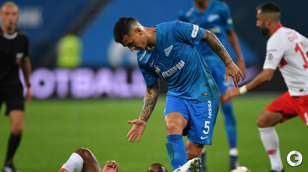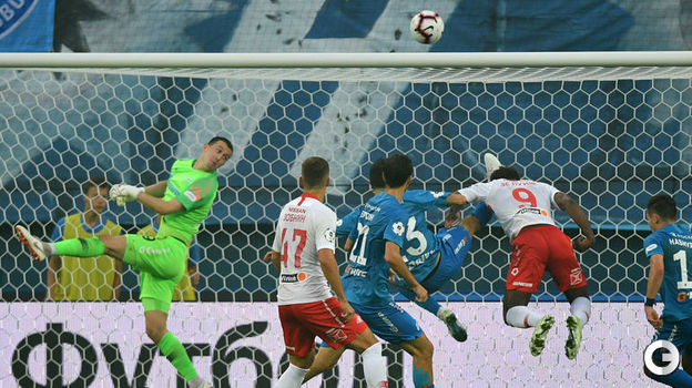 "Зенит" и "Спартак" не открыли счет в матче 6-го тура чемпионата России. В первом тайме травму после столкновения с Артемом Дзюбой получил Самюэль Жиго. Защитник красно-белых не смог продолжить игру. Кроме того, в первой 45-минуте арбитр Владимир Москалев не назначил два пенальти: сначала в ворота хозяев, потом – в ворота гостей. Сине-бело-голубые потеряли первые очки в РПЛ, но продолжают лидировать с 16 баллами. Красно-белые с 14 очками занимают второе место.