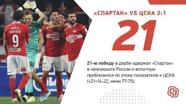 Самые интересные цифры огненного дерби «Спартак» — ЦСКА (2:1).