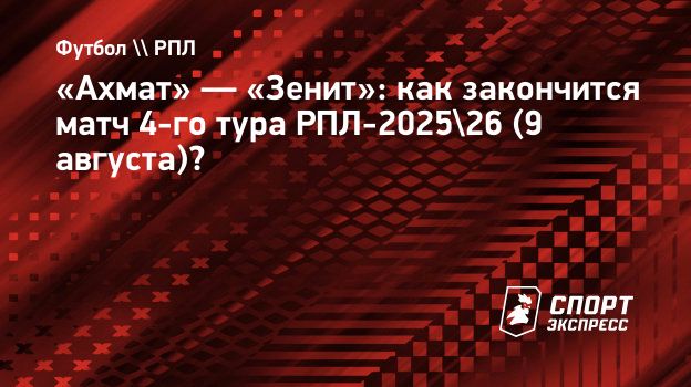 «Ахмат» и «Зенит» встретятся в 4-м туре чемпионата России-2025/26. Матч пройдет в Грозном в субботу, 9 августа.