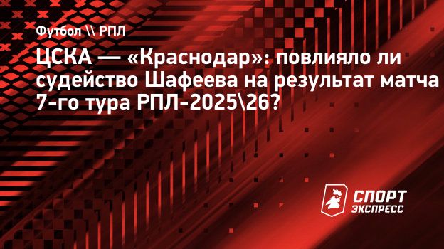 ЦСКА — «Краснодар»: повлияло ли судейство Шафеева на результат матча 7-го тура РПЛ?