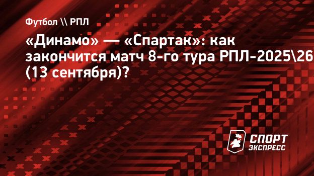 «Динамо» и «Спартак» сыграют в 8-м туре чемпионата России-2025/26. Матч на стадионе в Петровском парке пройдет в субботу, 13 сентября.