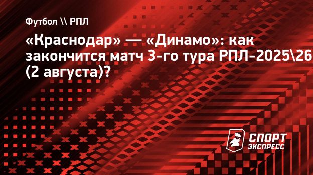 «Краснодар» и «Динамо» встретятся в 3-м туре чемпионата России-2025/26. Игра в Краснодаре пройдет в субботу, 2 августа.