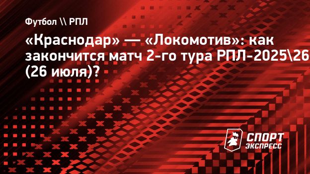 «Краснодар» и «Локомотив» встретятся во 2-м туре чемпионата России-2025/26. Матч пройдет в Краснодаре в субботу, 26 июля.