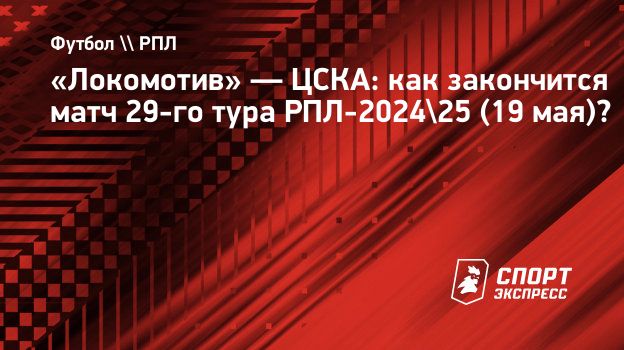 «Локомотив» и ЦСКА сыграют в 29-м туре чемпионата России-2024/25. Матч на стадионе «РЖД Арена» в Москве пройдет в понедельник, 19 мая.