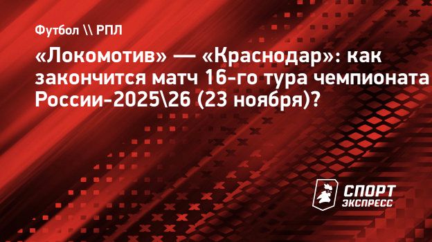 «Локомотив» и «Краснодар» сыграют в 16-м туре премьер-лиги в воскресенье, 23 ноября. Матч первого уик-энда РПЛ после паузы на игры сборных пройдет на «РЖД Арене» в Москве.