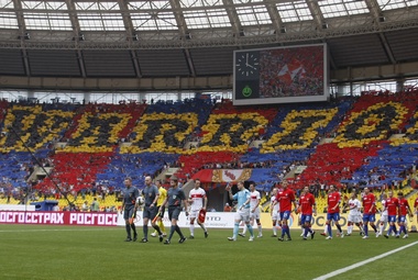 Между тем, заглянув в билет, выяснил: мне же в D-6, в "армейский" сектор. Поменял направление, мысленно похвалив себя за нейтральность цветов. Хотя тут же увидел: аналогичным курсом следует группа из трех ребят и двух барышень в красно-белой атрибутике. Видимо, "моим" маршрутом прошли: тут не до выбора - на матч бы попасть. Вот и получился красно-белый островок посреди красно-синего моря. Ну и я - несостоявшийся спартаковец.