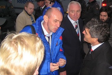 Сергея Игнашевича окружило сразу человек 50, и даже милиционерам с трудом удалось проложить защитнику дорогу. Сам он отвечать никому не стал - просто ушел. Братья Березуцкие предпочли пообщаться с фанатами на том же сугубо русском языке, что и те. Перепалка длилась пару минут, после чего один из наиболее активных болельщиков взял у кого-то из близнецов предложенную в подарок майку. Этот эпизод несколько разрядил обстановку, вызвав всеобщий смех.