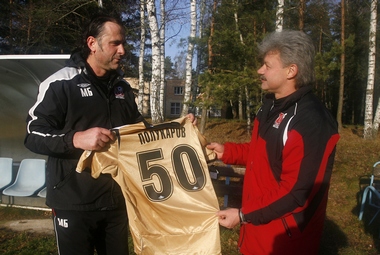 Цифра 5 вчера вообще превалировала в "Москве". В пятый день недели пятидесятилетний юбилей отмечал тренер "горожан" Александр Полукаров. В самом начале занятия Миодраг Божович под аплодисменты команды вручил имениннику клубную футболку золотистого цвета с подобающим моменту номером и фамилией юбиляра. А если добавить, что вчера же был день рождения у начальника административного департамента "Москвы" Николая Суржика, который на пару лет старше Полукарова, то можно не удивляться, что в столице и области распогодилось.