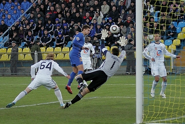 Раменчане в дебютном отрезке лишили было соперника мяча, но один из поначалу немногих ответных выпадов обернулся эффектной голевой комбинацией. Гацкан из центра поля перевел мяч на фланг, откуда Лебеденко в пару касаний направил его во вратарскую на голову Павленко, и счет был открыт. Гости тут же сникли и по сути так и не пришли в себя до финального свистка. Ничего не получалось, даже когда оставалось только нанести завершающий удар, какой, например, Бояринцеву было сделать под силу.