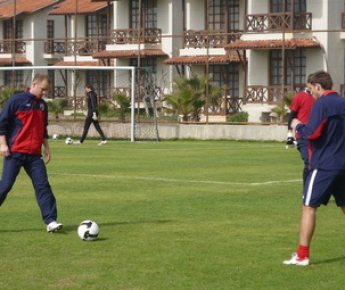 Тренировка, сопровождавшаяся мелким, надоедливым дождем, завершается, тренеры покидают поле, но примерно полкоманды продолжает стрельбу по воротам. "Алания", еще только складывающаяся как коллектив премьер-лиги, боится упустить, торопит время.