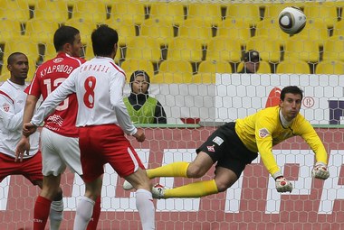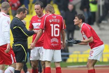 И тут же о преимуществе "Спартака" в одного игрока можно было забыть. Даже первый опасный момент во второй половине встречи создали гости: после подачи со штрафного Джанаев сыграл ненадежно, выбив мяч прямо на соперника. К счастью для него, удар получился не самым сильным. Через несколько минут в штрафной москвичей вспыхнул настоящий "пожар": Сирадзе дважды бил в упор – сначала головой, а затем, после отскока от Джанаева, уже ногой. В первый раз хозяев выручил вратарь, во второй – оказавшийся на линии ворот Сабитов.